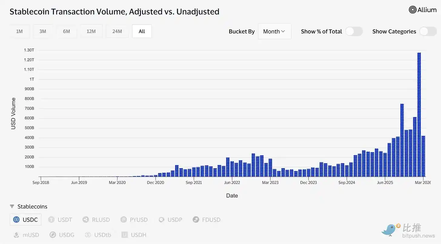 Transaction data confirms this. In February alone, USDC processed approximately $1.26 trillion in adjusted trading volume, compared to $514 billion for USDT. Tether’s (USDT) market capitalization remains at $184 billion, while USDC stands at $79 billion. In terms of total supply, the two are not comparable. However, USDC’s current liquidity has already surpassed that of USDT.