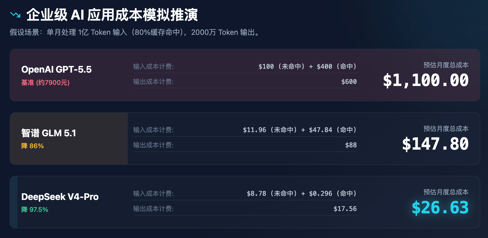 To more intuitively demonstrate the impact of these price changes on business decisions, we conducted a cost simulation for enterprise-level applications.