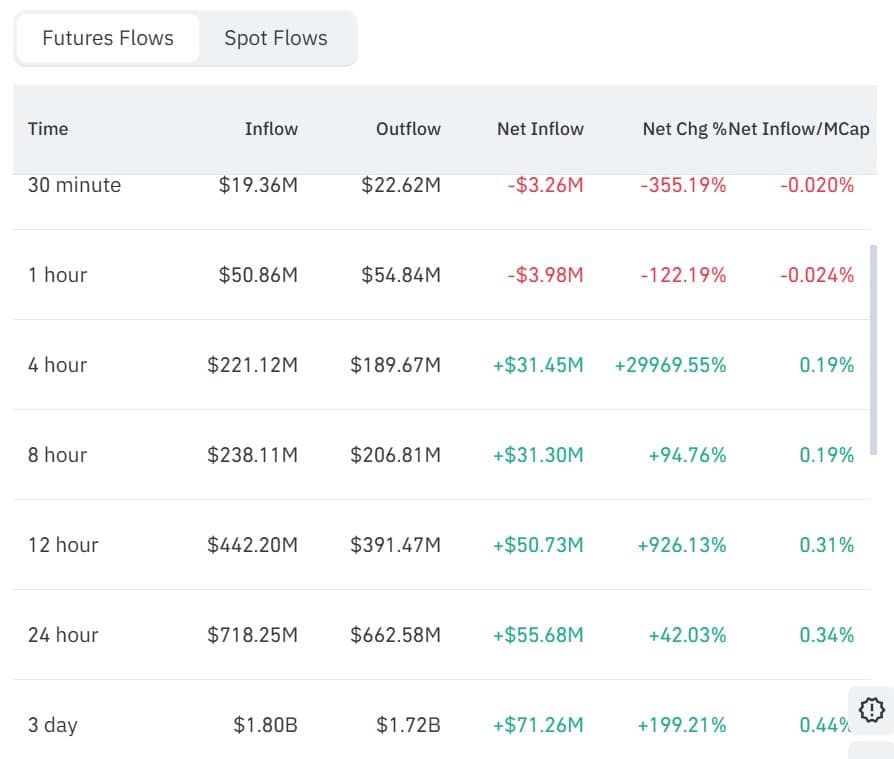 Even more so, significant capital flowed into these positions. CoinGlass data showed that $718.2 million flowed into Futures positions while $662.5 million exited the market.