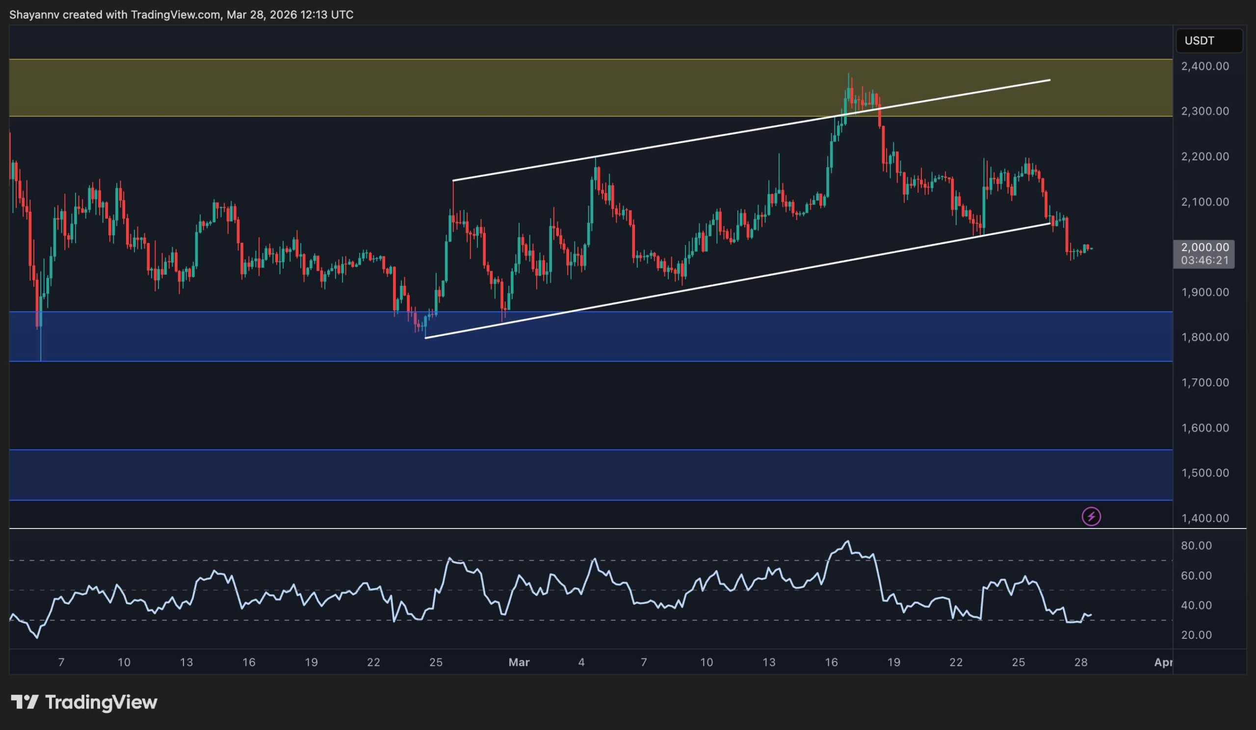 The fake breakout and rejection from the upper boundary near $2.4k led to this sharp pullback in the first place, and the asset is now hovering around the $2k level. This area is acting as a short-term pivot, but momentum has cooled significantly, with the RSI dropping back toward neutral levels.