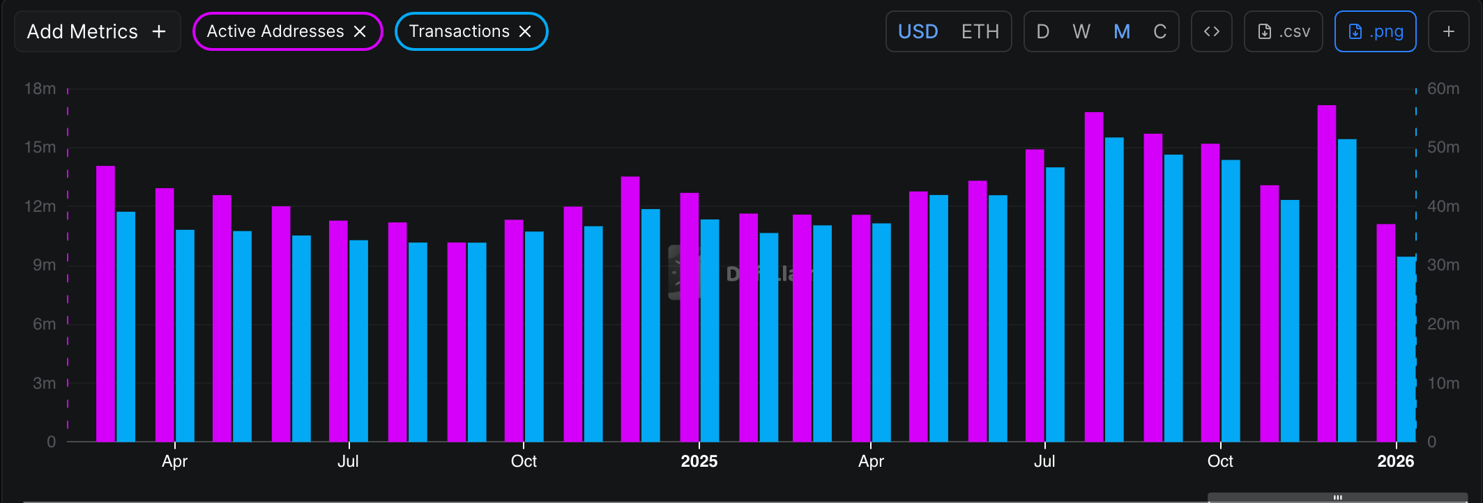 Ethereum active addresses and transactions | Source: DeFi Llama