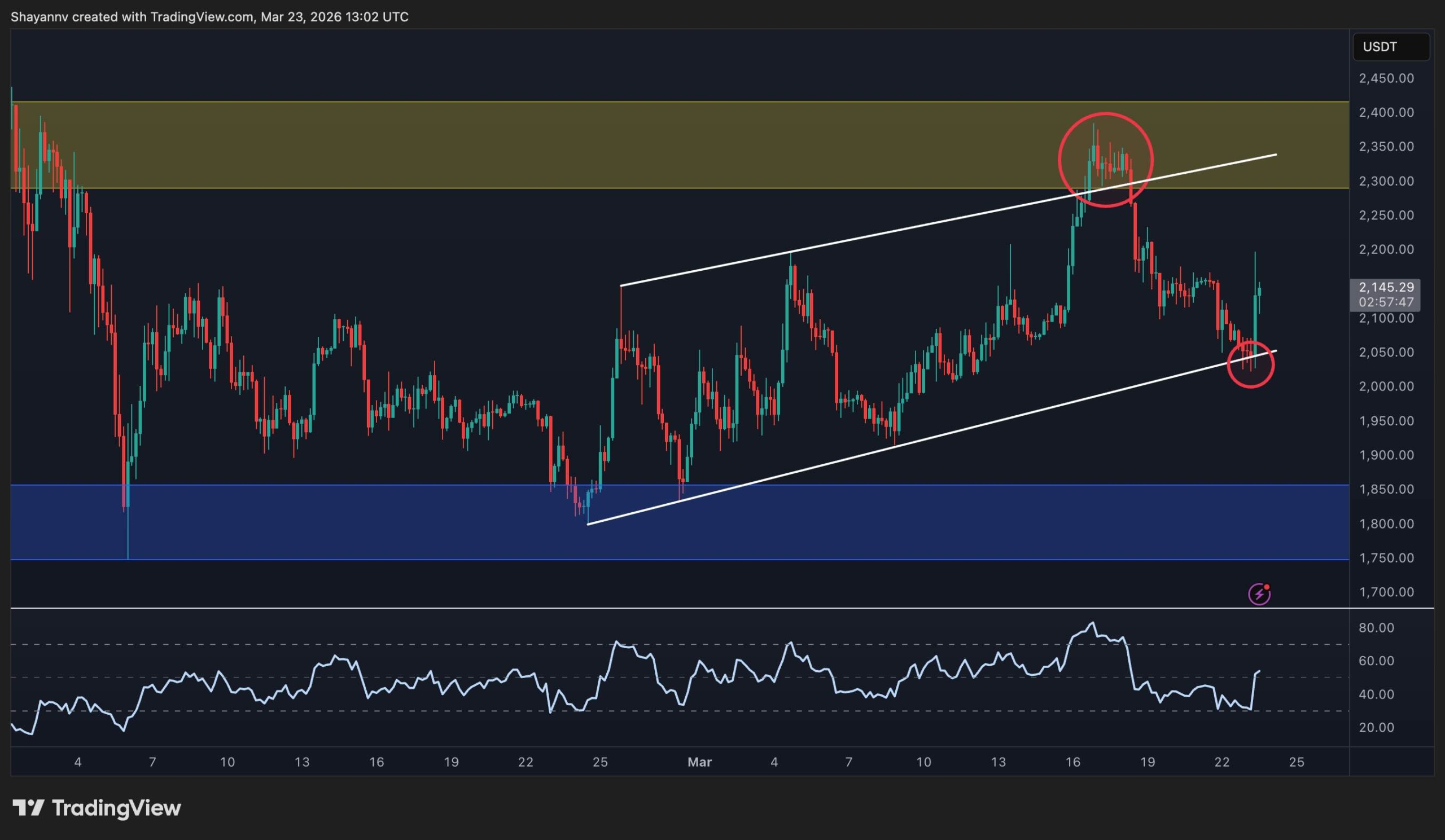 Following the rejection, ETH dropped back inside the channel and is now trading around $2,150. The loss of momentum is further confirmed by RSI, which showed an overbought signal at the recent highs, indicating that, despite higher prices, buying strength was weakening. Yet, in another interesting development, ETH has jumped significantly from the lower boundary of the channel, indicating that another test of the higher trendline and the $2.4k supply zone could be expected in the coming days.