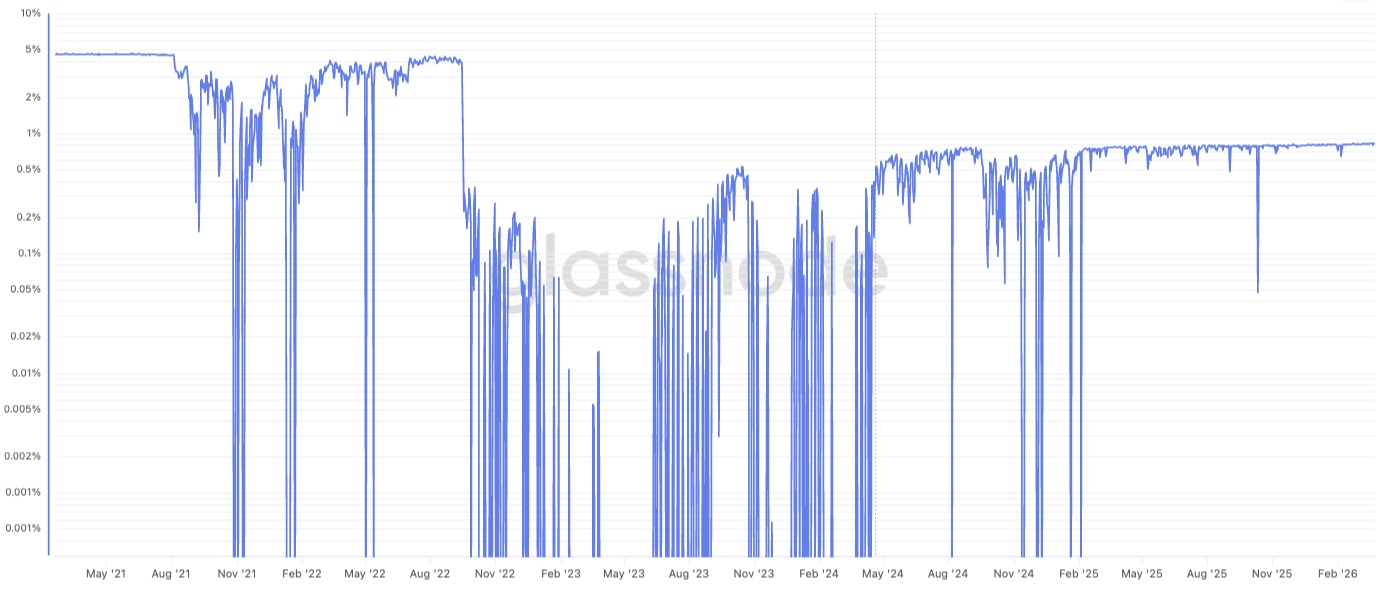 The network maintains a low block reward issuance rate (approximately 2.5% annually), and its unique fee burning mechanism offsets this issuance. This dynamic results in a net annual inflation rate of approximately 0.8%, a notably efficient rate when compared to other smart contract platforms such as Solana, which has an annual inflation rate of about 3.94%. Additionally, MEV and standard transaction fees further supplement validator rewards.