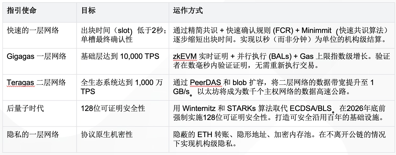 Strawmap established five "guiding missions" that define the ultimate architectural form of Ethereum: