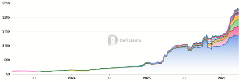 By early 2026, the on-chain tokenized RWA market surpassed $20 billion, quadrupling from $5 billion at the beginning of 2025. U.S. Treasuries alone accounted for $10 billion, led by BlackRock’s BUIDL fund ($2.6 billion AUM), Ondo Finance, and Franklin Templeton’s FOBXX. McKinsey forecasts that by 2030, the broader tokenized RWA market could reach $2 trillion, with some estimates as high as $16 trillion. By value, nearly 60% of all tokenized RWAs are anchored on Ethereum.