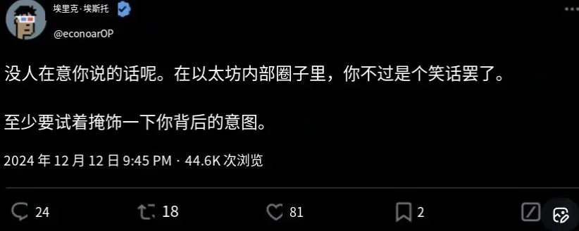 Everyone is tired of the community's repeated excuses. Ethereum feels like a wealthy old lady who refuses any innovation even when struggling, yet keeps giving money to the parasitic kids and grandchildren clinging to her.