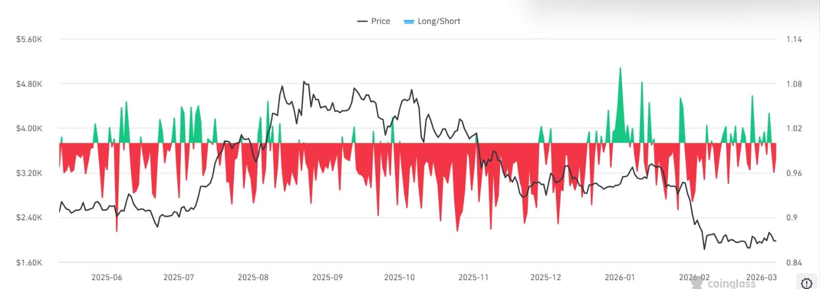 Interestingly, this was not an isolated case either as ETH saw a significant increase in short positions too. CoinGlass revealed that the altcoin’s Long/Short Ratio fell below 1, dropping to 0.96 at press time.