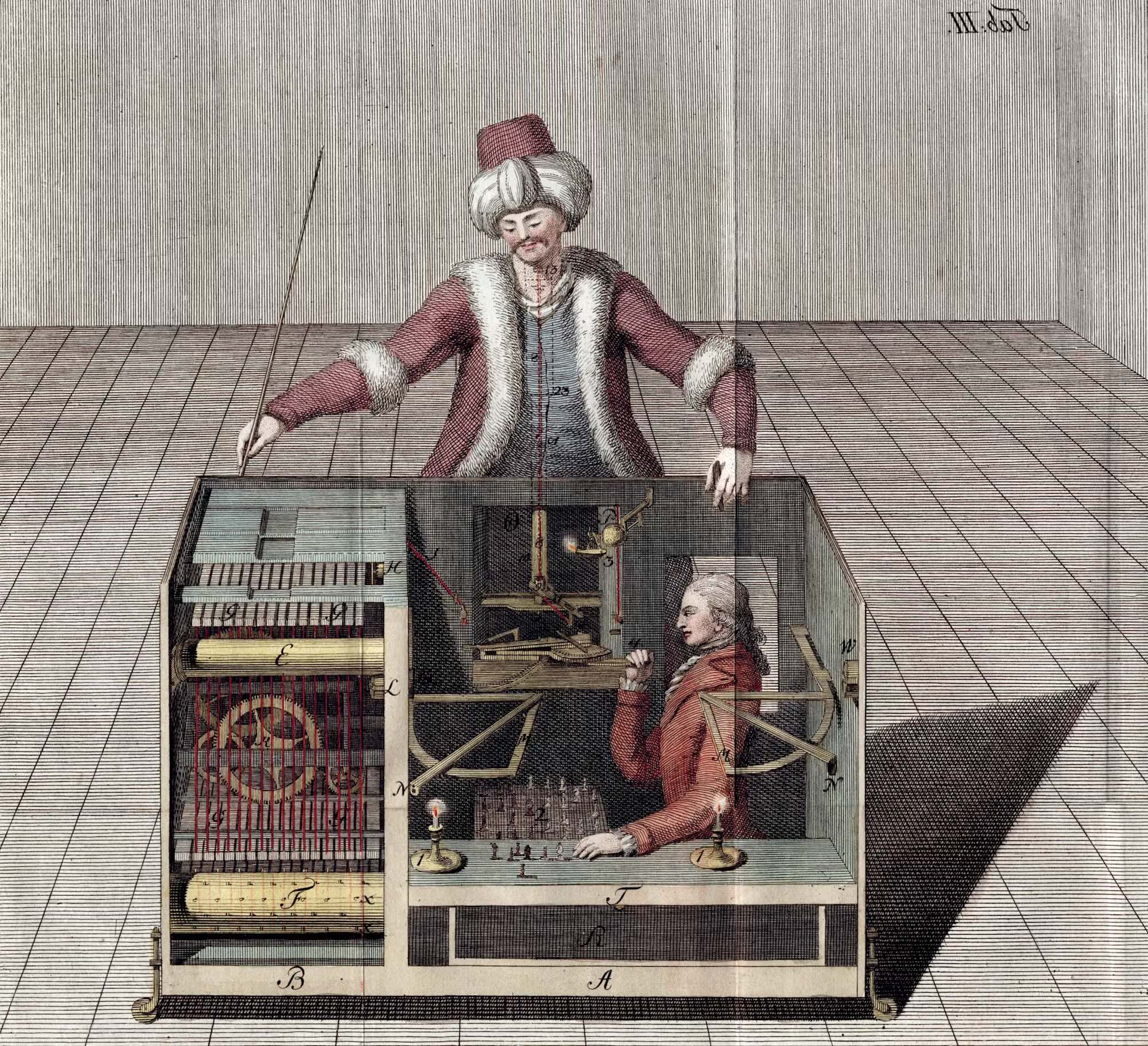 The Mechanical Turk of 1789 was a chess-playing machine that appeared to operate autonomously but was in fact controlled by a hidden human operator.