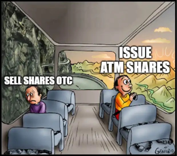 The pricing of these new ATM shares is not at a discount OTC, but rather anchored to the market price (usually based on VWAP, volume weighted average price).
