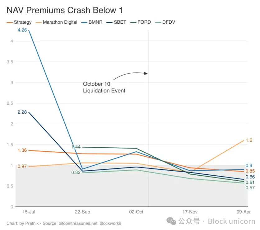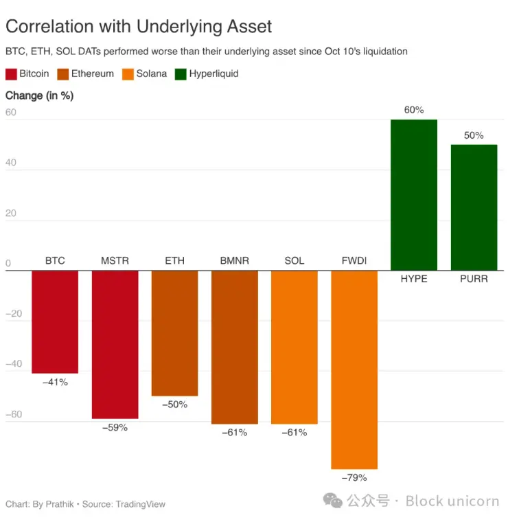 In the first wave of DATs, the very structure of the instrument was innovative. Companies could convert BTC to ETH, or ETH to SOL, and this model worked well. This was because its flywheel effect was built around a premium on the company’s net asset value (NAV). The underlying assets didn’t matter—so long as DAT shares traded at a premium, investors would buy, expecting higher returns from the token’s price appreciation.