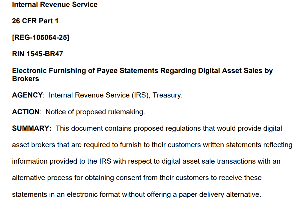 The U.S. Treasury and the Internal Revenue Service (IRS), the tax watchdog, have proposed that crypto brokers use default electronic delivery for crypto tax forms for customers.