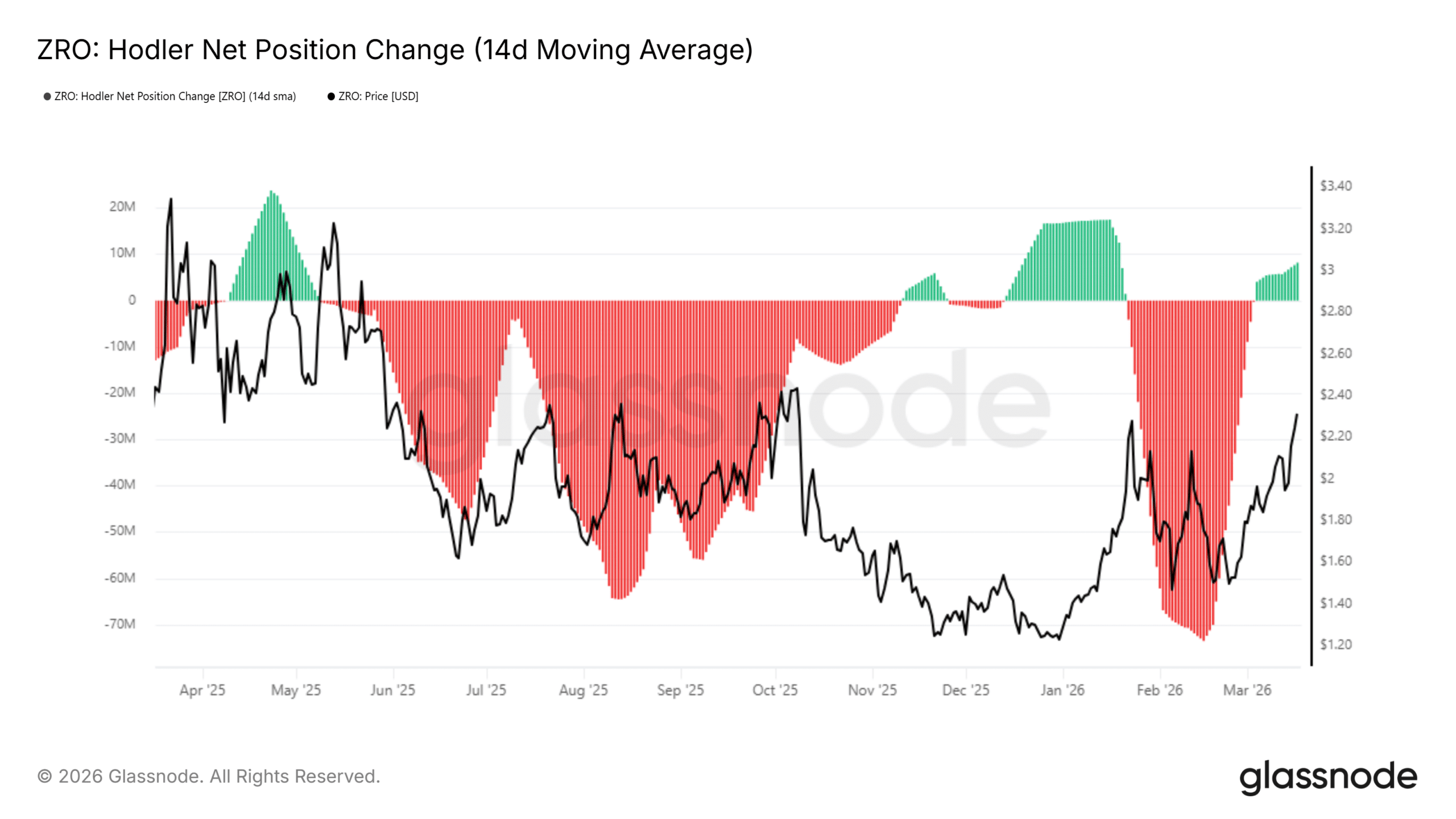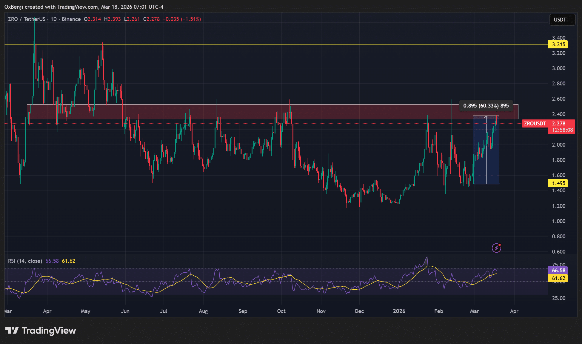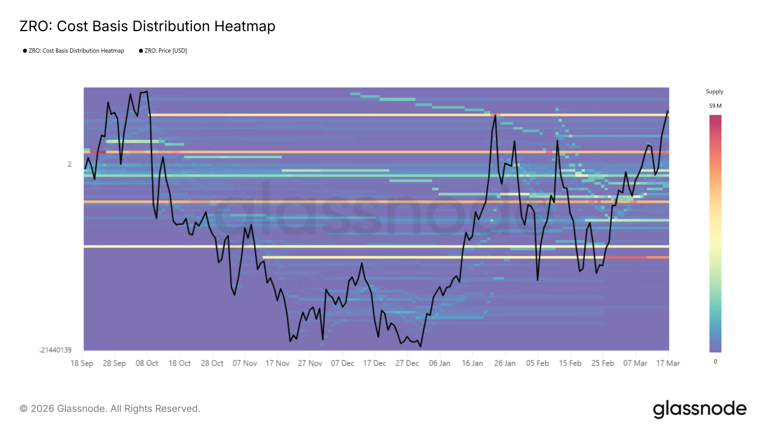 That said, ZRO was up 60% from the range low of $1.49 and had hit $2.5, a key resistance zone since H2 2025. The recent recovery attempts in January and February were rejected at the roadblock (red).
