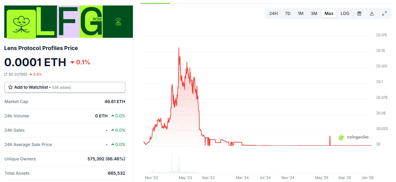 However, the technical feasibility has not translated into a thriving ecosystem. According to... CoinGecko Data, currently this protocol has a total of66.5Ten thousand NFT stands for Non-Fungible Token., by 57.5 Held by ten thousand individual holders, the total market value is 13.8 ten thousand US dollars.