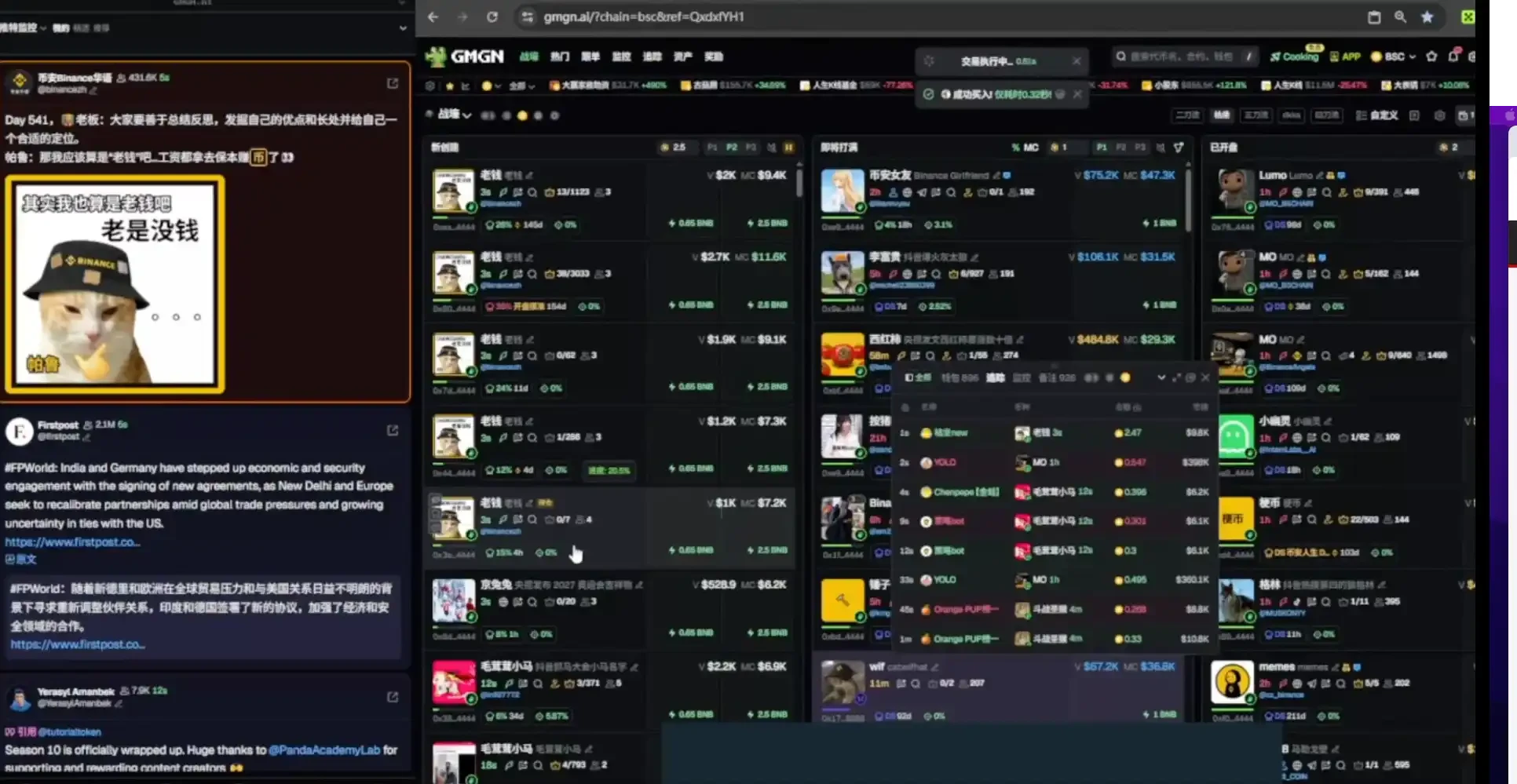 However, having good equipment alone isn't enough to make him a recent star trader. What truly sets him apart is his approach to trading on the BNB chain, and some details of this can be captured in his live streams.