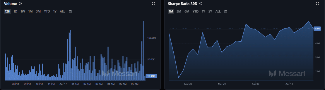 The rally was driven by aggressive buys, with daily trading volume exploding by 146% to around $27.26 million. The altcoin saw the biggest volume bars since the start, indicating increased trading activity of the token.