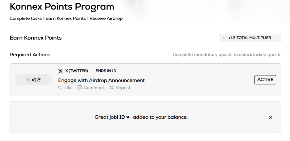 On January 20th, Konnex announced the launch of a points platform on the X platform.