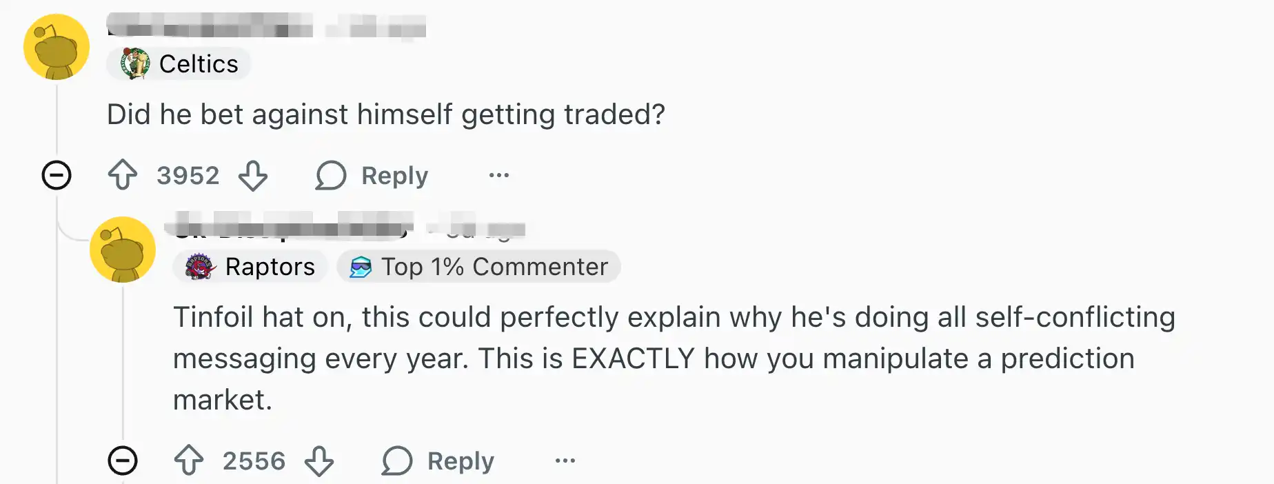 In the cooperation statement, Kalshi emphasized that Giannis will be prohibited from participating in any NBA-related trades. However, the real risks remain, and fans are not optimistic about Giannis' willingness, ability, intensity, and transparency in self-regulation. In fact, many fans have even started to speculate whether Giannis himself is involved in trades regarding his future. Combined with the contradictory statements he has made repeatedly before the NBA trade deadline, some people speculate that he is manipulating insider trading and at the same time playing tricks on the fans.