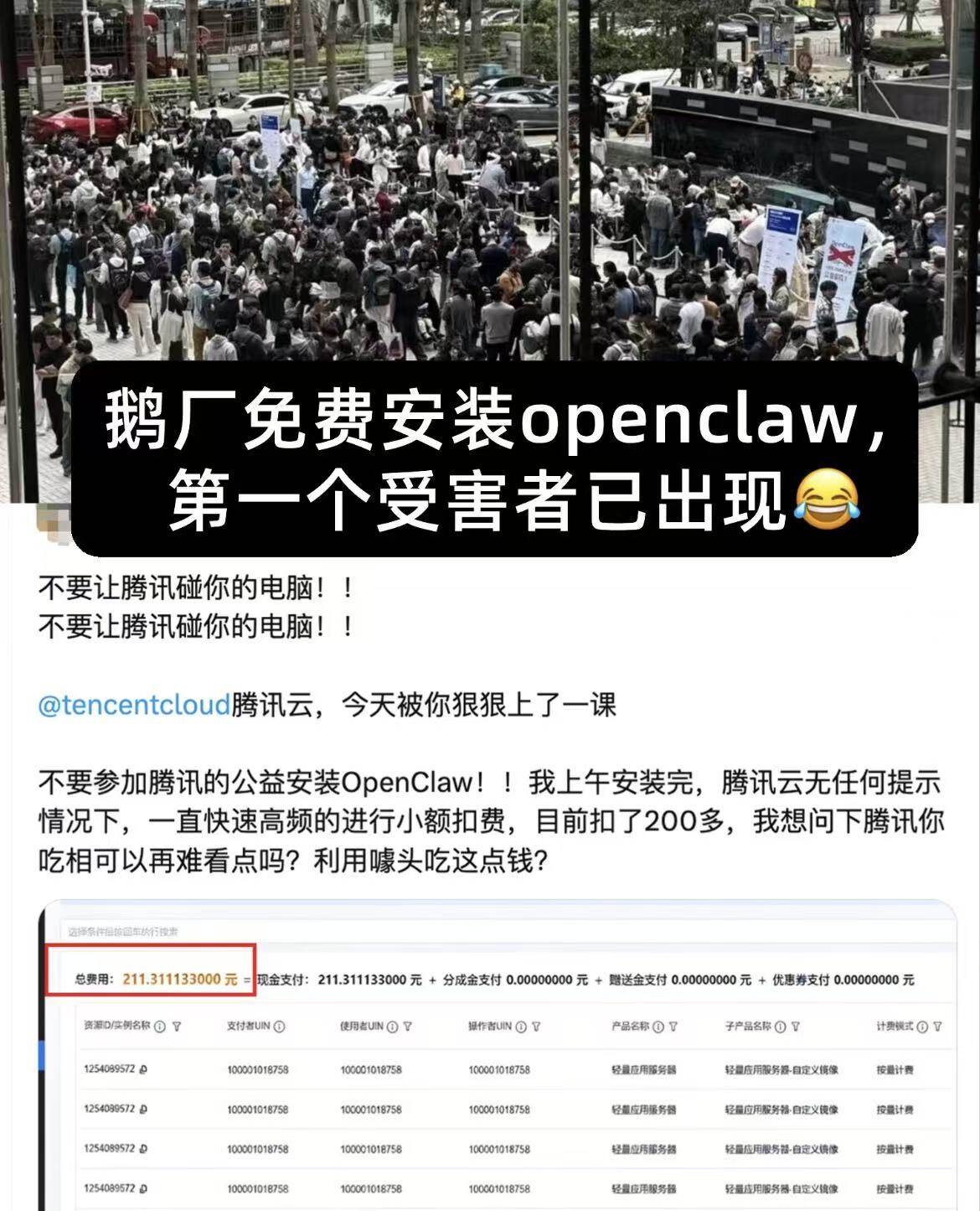 However, among the majority of participants we’ve encountered, many users remain stuck at the installation stage and don’t know how to truly use the tool. Most people are still using simplified installation versions provided by various AI model companies or platforms. Even worse, some users who finally went through the trouble of queuing in person to have OpenClaw installed by Tencent Cloud’s team end up letting it run automatically due to unfamiliarity with the interface, resulting in an unexpected and modest Token expenditure—only to end up angrily criticizing Tencent Cloud for being greedy.