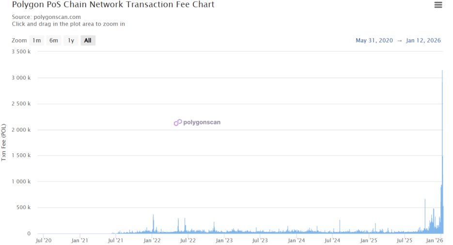 Previously, the Polygon PoS network also set a historical record by burning 3 million POL tokens in a single day, equivalent to approximately 0.03% of the total supply. This was not coincidental, but a natural outcome as the ecosystem entered a phase of high-frequency usage.