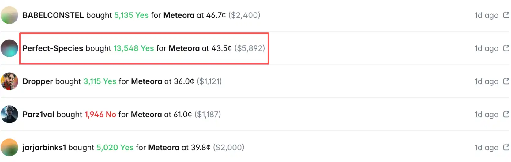 But over time, Meteora was pushed to the top of the probability list, and an operation involving a newly created address gave the market a whiff of conspiracy.