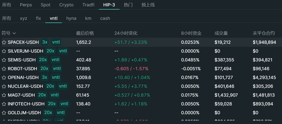 One approach is the perpetual contract model represented by Hyperliquid, such as under the HIP-3 framework, where developers can customize and deploy perpetual contract products for pre-IPO assets like OpenAI and SpaceX. The core logic combines pre-IPO assets with perpetual contracts without involving actual equity settlement—essentially bypassing equity ownership entirely and providing only price exposure, allowing users to bet on the valuation fluctuations of companies like SpaceX and OpenAI.