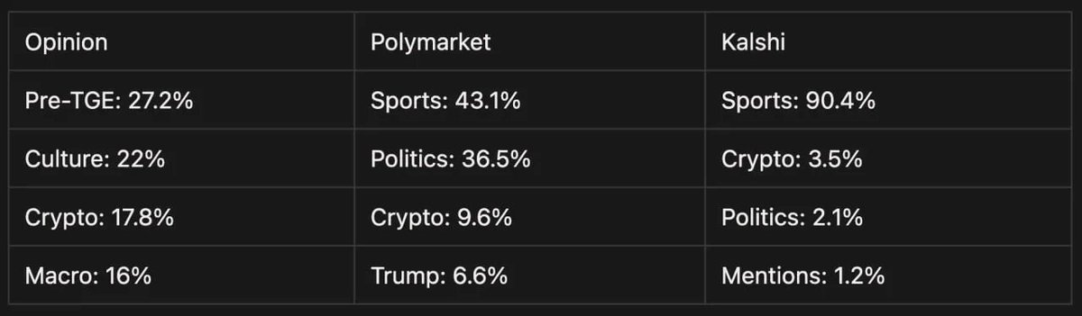 When shared attention is absent, liquidity does not automatically consolidate; instead, it naturally disperses. The structure we observe reflects this exactly: compared to Polymarket and Kalshi, Opinion’s trading distribution is significantly more dispersed, with volume not collapsing into a few top events, but rather continuously spread across the long tail of markets that offshore users genuinely care about.