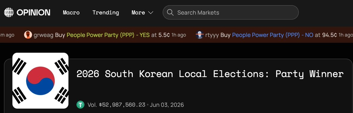 This difference is very clearly reflected in the data. Under the event of the 2026 South Korean presidential election, Polymarket’s trading volume was approximately $400,000, while Opinion Labs reached $52 million. Prediction markets cannot be winner-takes-all, because belief formation is highly localized.