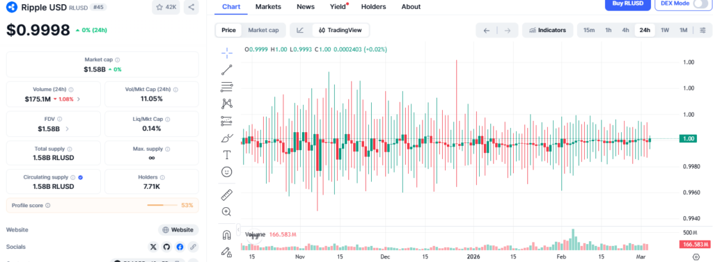 CoinMarketCap data showed Ripple’s USD circulating supply reached roughly 1.5 billion tokens. The dollar-pegged asset represented a small share of the global stablecoin sector, which remains dominated by larger issuers. Still, Ripple gradually integrated the token deeper into its institutional payment infrastructure.