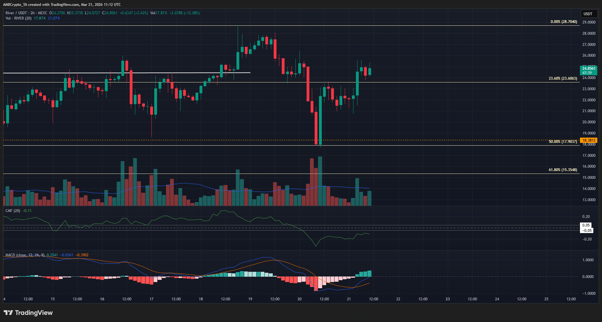Technical analysis showed that RIVER could be turning its trend bullish, even though the short-term indicators flashed warning signals.
