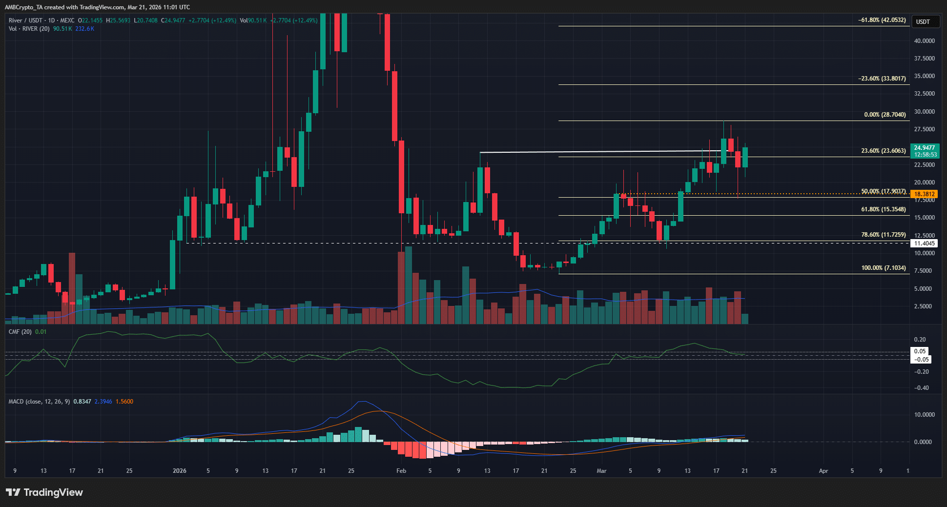 This meant that River traders can expect a deeper price dip in the next few days. The immediate target is $15 for a retracement, with a possible drop to $11 in case of a heavy Bitcoin [BTC] sell-off.