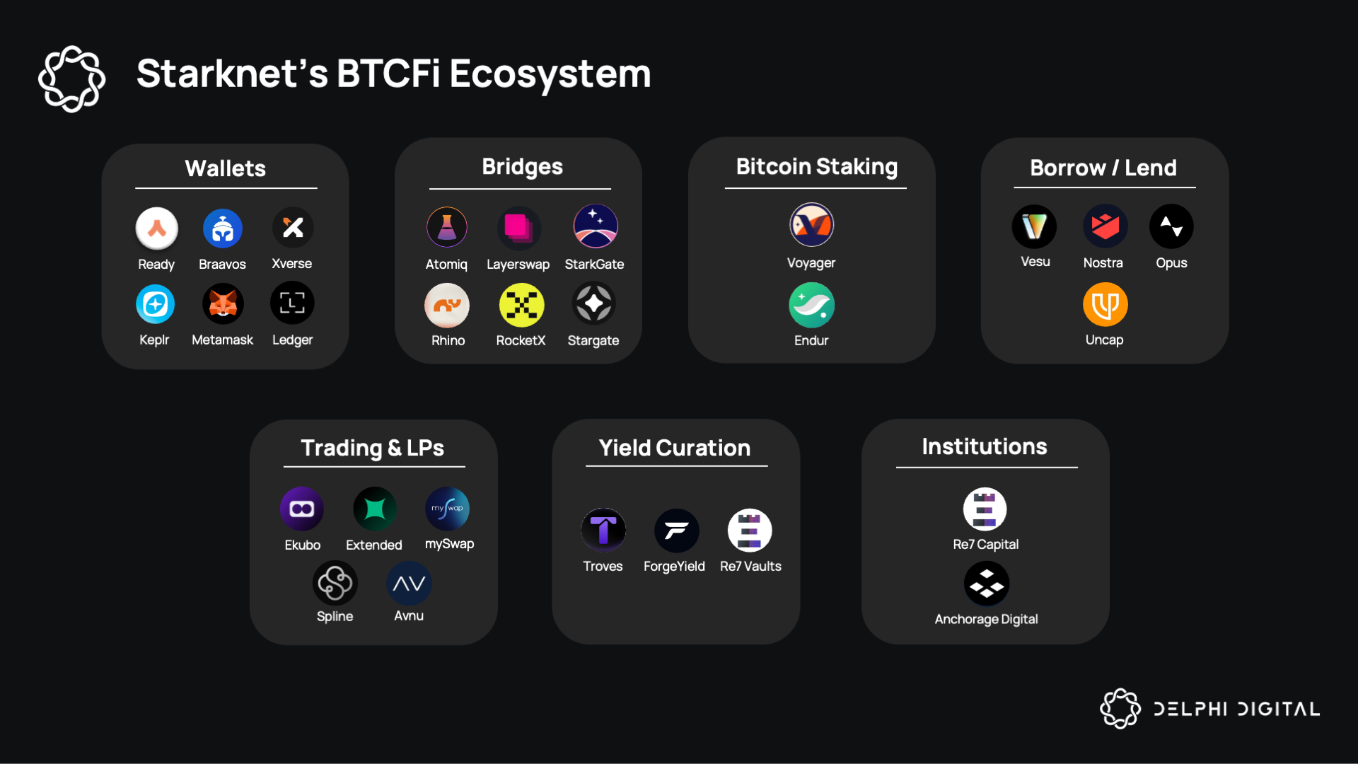 The Bitcoin ecosystem on Starknet has also gradually become more complete, offering everything from wallets and cross-chain bridges, to staking, lending, and yield protocols, with all the use cases already proven viable.