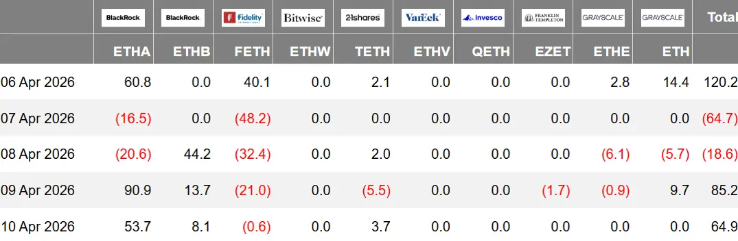 Last week, the main inflows came from BlackRock's ETHA, with a net inflow of $168 million. Four Ethereum spot ETFs were in net inflow.