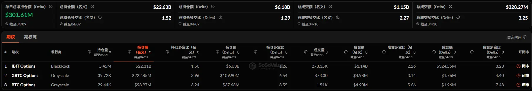 As of April 9, the notional open interest of U.S. spot Bitcoin ETF options reached $22.63 billion, with a net long-to-short ratio of 1.52.