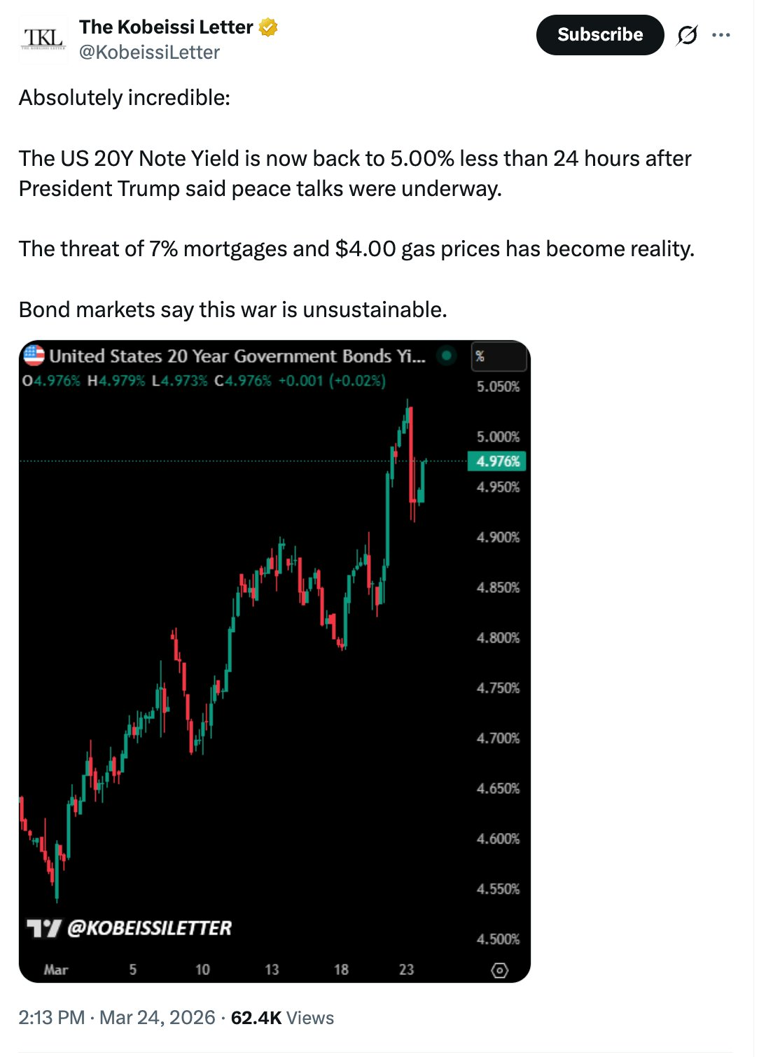 During the war between the United States and Iran, Bitcoin has been one of the strongest-performing assets. However, due to the bond market showing signs of "losing control," Bitcoin's upward momentum is beginning to show signs of exhaustion.