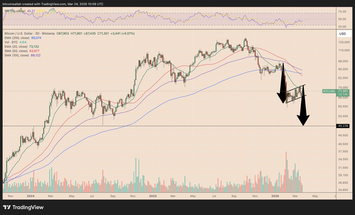 From a technical analysis perspective, if the price of Bitcoin breaks below the current bearish flag pattern, it could decline further to $50,000 or lower over the coming months.