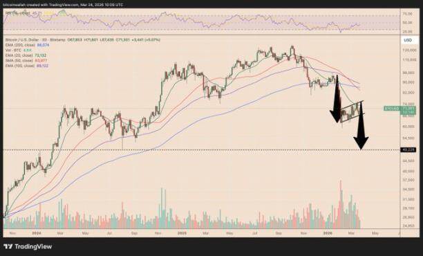 From a technical analysis perspective, if the price of Bitcoin breaks below the current bearish flag pattern, it could decline further to $50,000 or even lower over the coming months.
