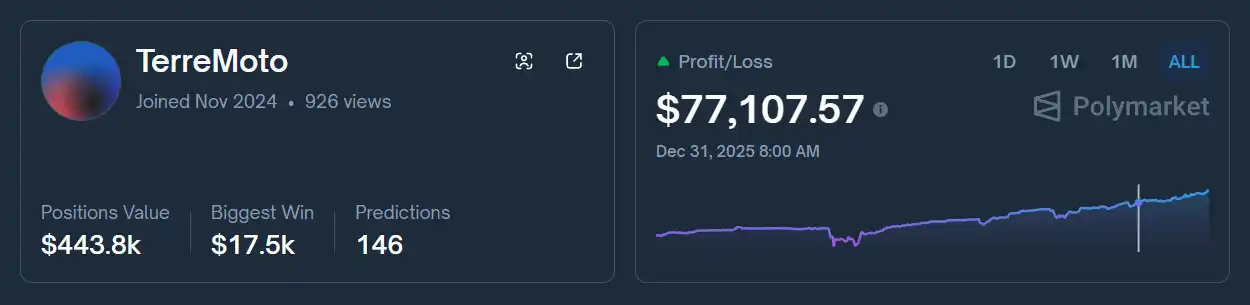 Based on clues revealed by Vitalik in the interview and Polymarket's mechanism that allows traders' records to be verified, we can actually attempt to outline his account profile: $440,000 in principal, $70,000 in annual profit, and he earned money by betting that Trump would not receive the 2025 Nobel Peace Prize.