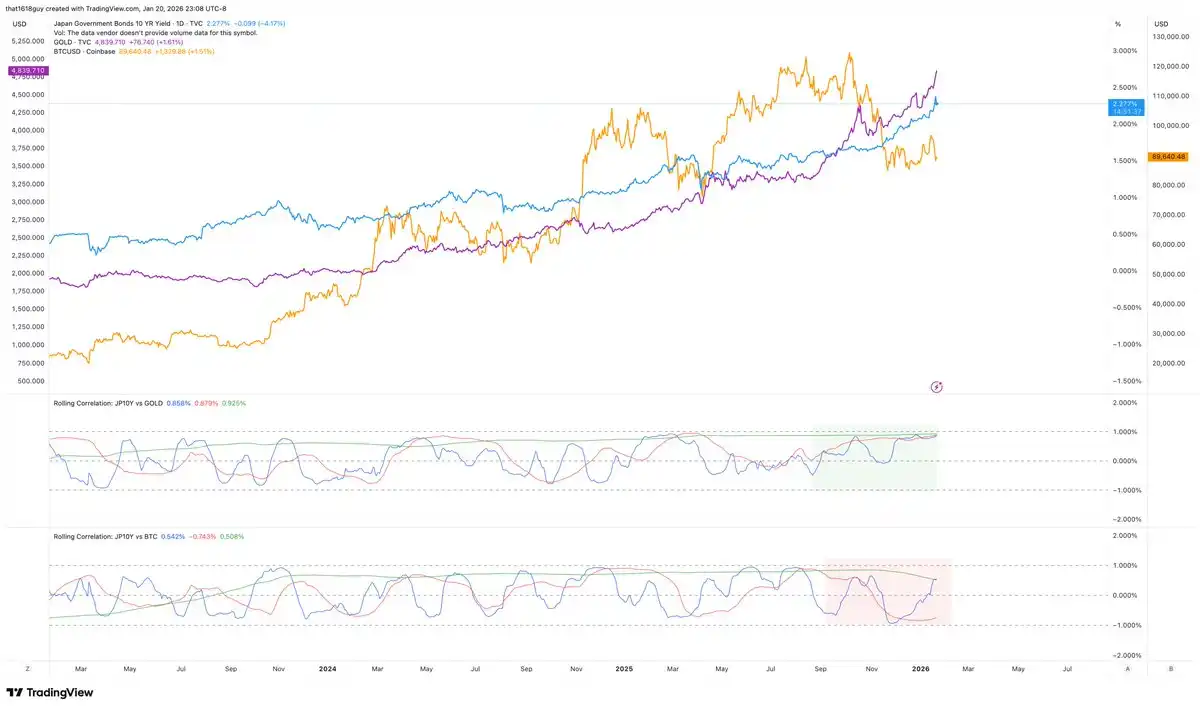 Editor's Note: The simultaneous rise in gold and Japanese 10-year yields stands in sharp contrast to the weakness in Bitcoin. This article points out that this divergence reflects a market shift from "tightening trades" to "risk pricing," and that every move by the Bank of Japan could become a key variable in breaking the current market pattern.