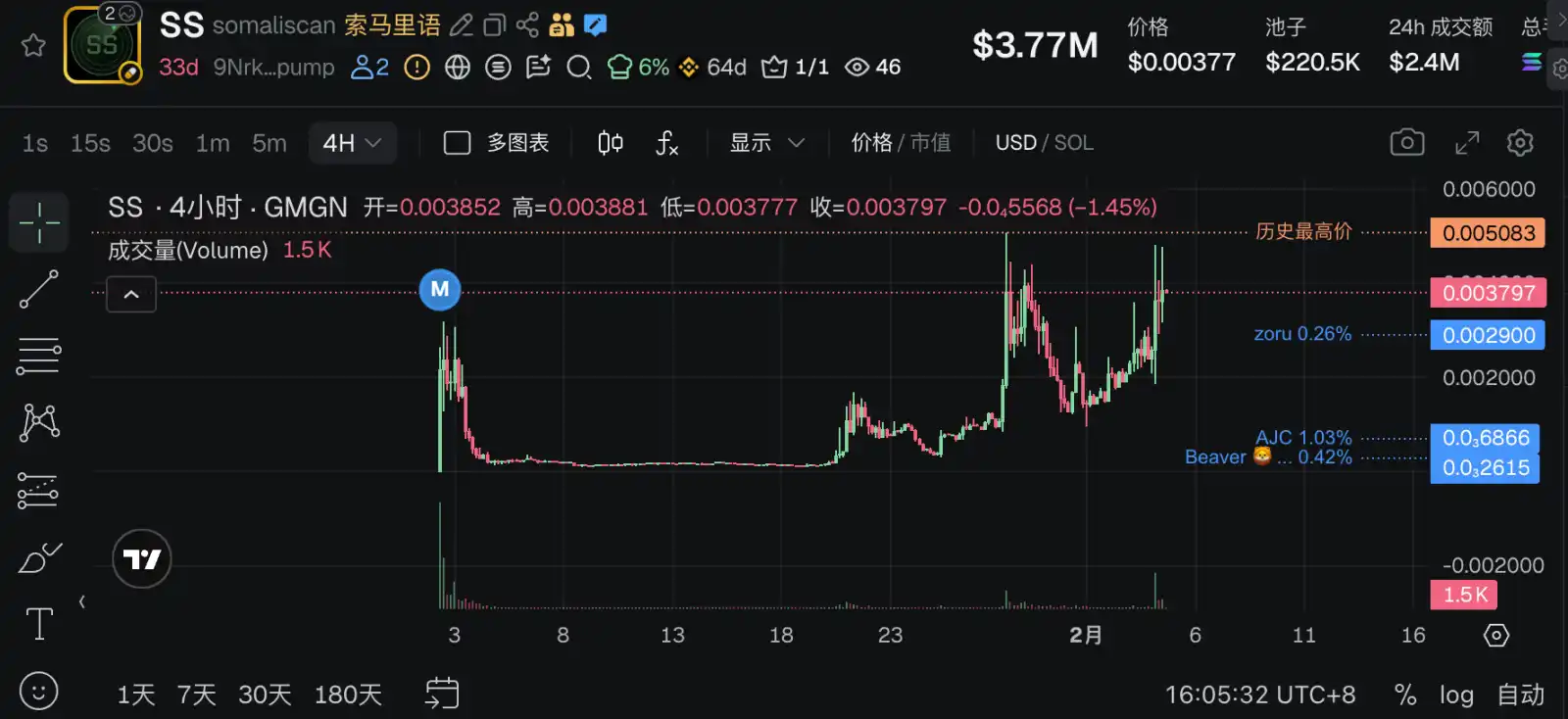 This token had an unremarkable performance at its initial release, but after Beaver's article received tens of millions of views, it hit a阶段性 high on January 28th, and surged again today when the winners were announced. Compared to SS's poor performance and the $1 million prize, this might be a rare case where "writing articles earns more than trading tokens."