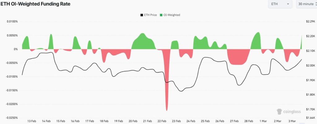 Taxa de financiamento do ETH. Fonte: CoinGlass