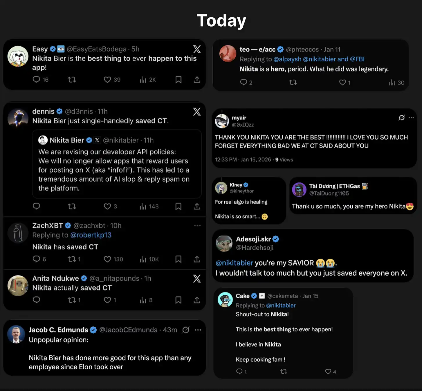 15 de Janeiro: Publicação pública de Nikita Bier. Kaito soube quase ao mesmo tempo que todos os outros da decisão final.