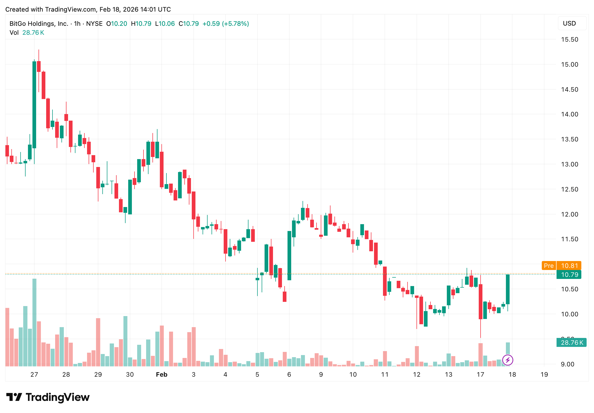 Em uma nota de 17 de fevereiro, os analistas do Mizuho, Dan Dolev e Alexander Jenkins, iniciaram a cobertura da Bitgo Holdings Inc. (NYSE: BTGO) com um preço-alvo que implica um potencial de alta de aproximadamente 50% a 60% em relação à faixa de fechamento recente da ação, próxima a US$ 10,87. A recomendação surge enquanto as ações permanecem sob pressão após a estreia pública da empresa, com a ação caindo cerca de 50% em termos de perdas percentuais históricas registradas pelo tradingview.com.