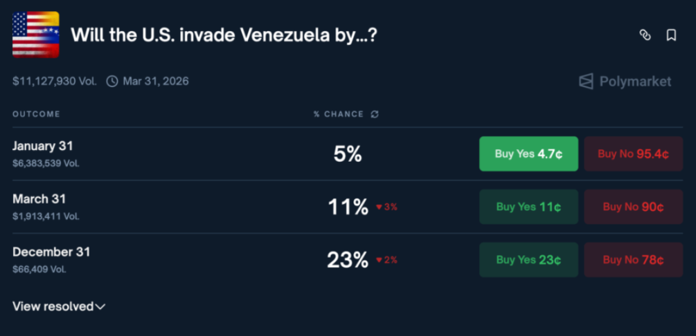 No entanto, o resultado final não correspondeu às expectativas de alguns utilizadores que apostaram — no final, o Polymarket não reconheceu as ações das forças armadas dos EUA como constituindo uma "invasão" no contexto das suas regras, negando assim a validade da opção "Yes", o que também provocou protestos por parte dos apostadores.