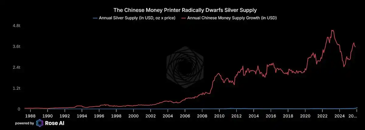 Se fosses uma família rica na China, preferirias depositar mais dinheiro num sistema bancário zumbi com trilhões de perdas implícitas, ou comprarias prata física a preços elevados, assumindo o risco de uma correção de 30%? Quando a tua outra opção é depositar dinheiro em bancos que, tecnicamente, já estão em insolvência, a resposta é óbvia.