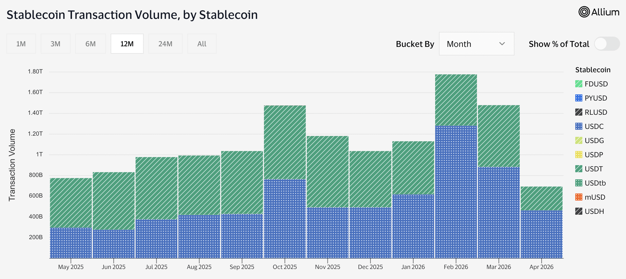 Isso torna o momento do lançamento interessante, pois o volume de transações da stablecoin atingiu um recorde de US$ 74,1 trilhões em apenas 12 meses. Os dados atuais sugerem ainda que a USDC da Circle está superando a USDT da Tether e outras stablecoins.