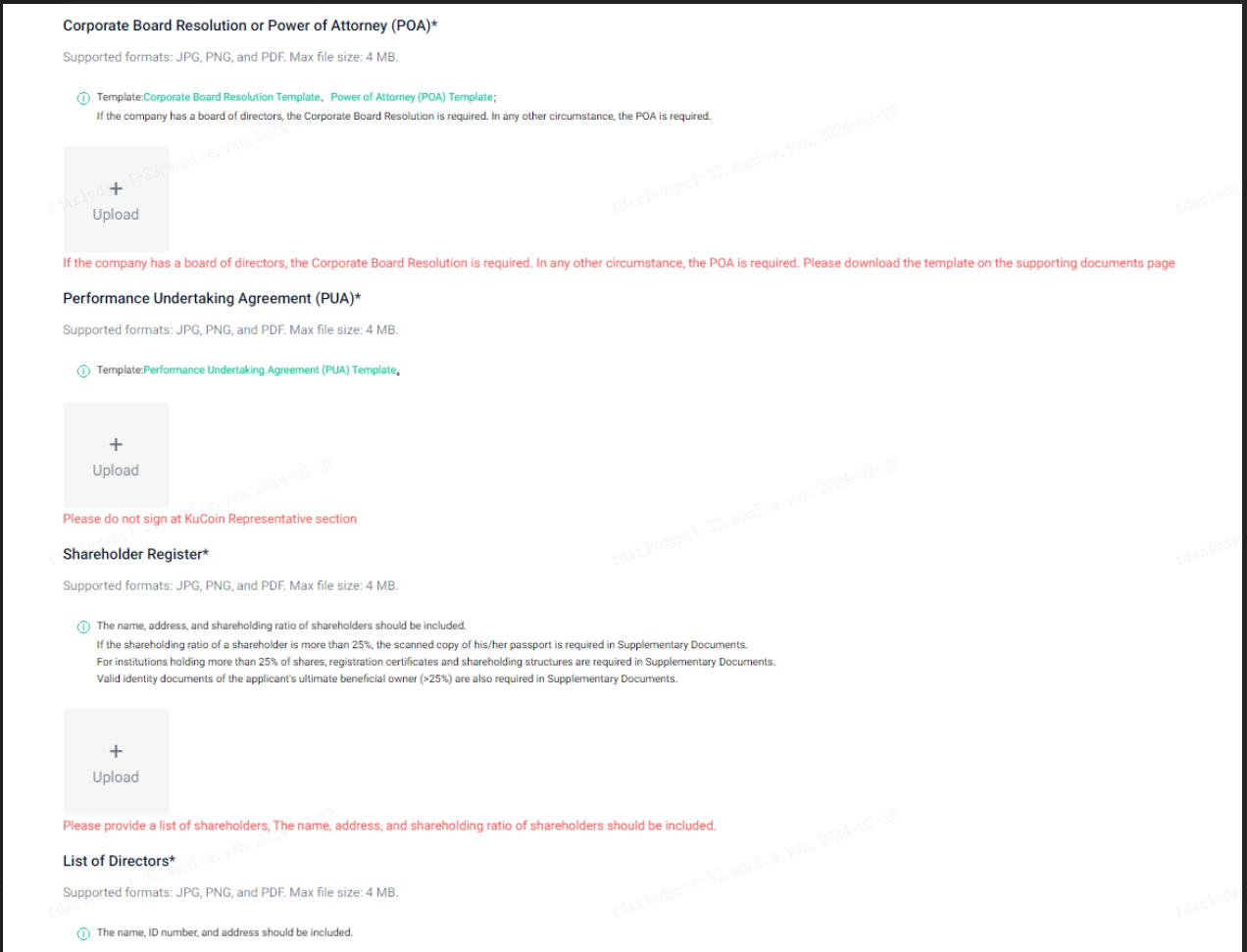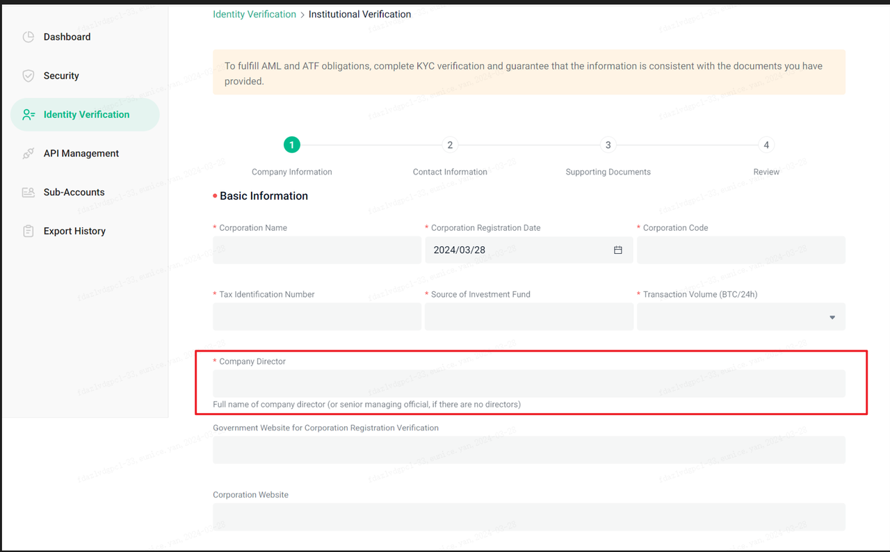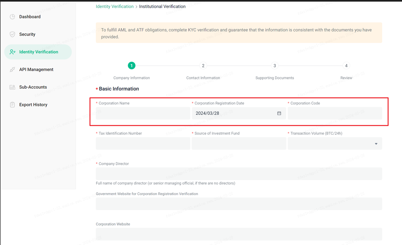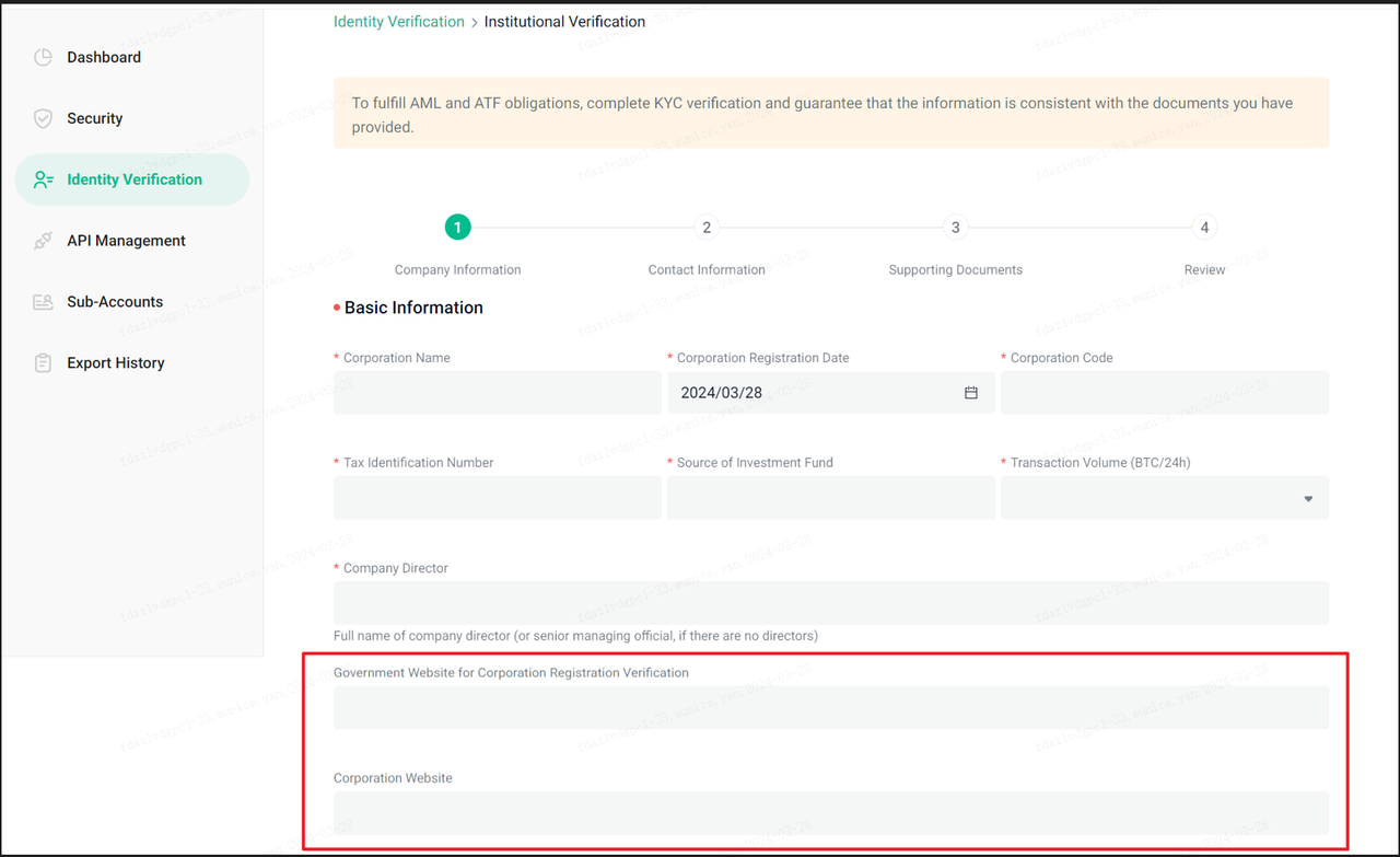 Depois de enviada, nossa equipe de KYC analisará sua aplicação, com atualizações via a página de KYC ou e-mail (institutional_kyc@kucoin.com). Durante este período, o seu estado de KYC será "Em andamento".