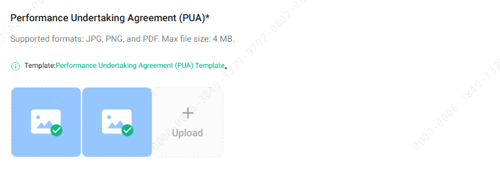 e. Acordo de Compromisso de Desempenho (PUA): Deve completar as informações necessárias no modelo fornecido e incluir a assinatura ou selo manuscrito da pessoa autorizada.