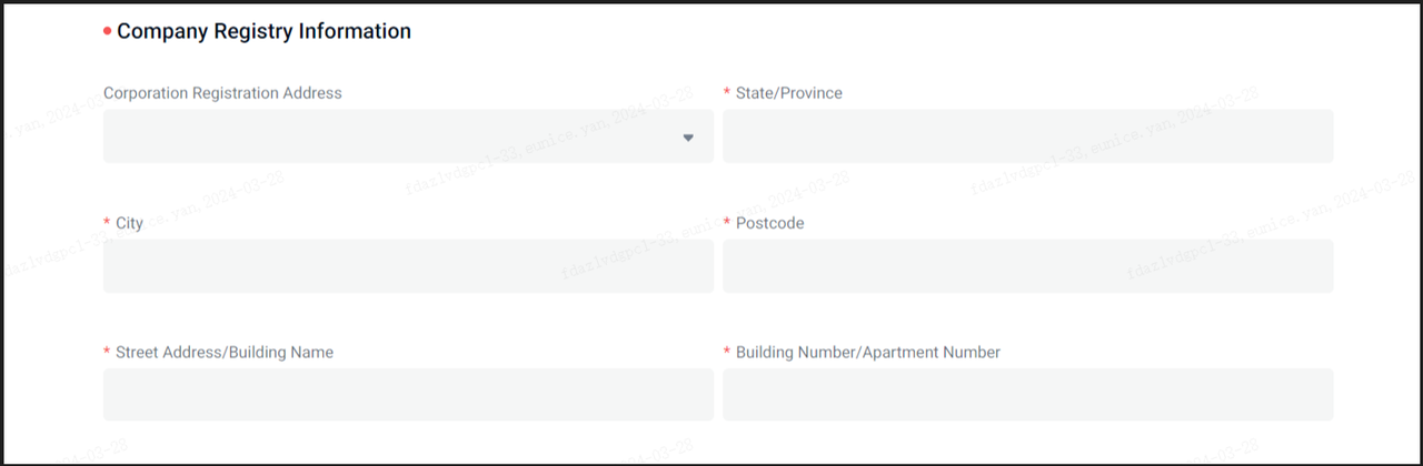 As informações do Registro da Empresa devem corresponder às fornecidas no Certificado de Registro da Empresa.