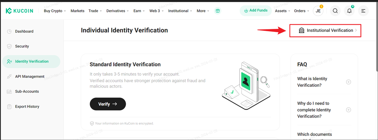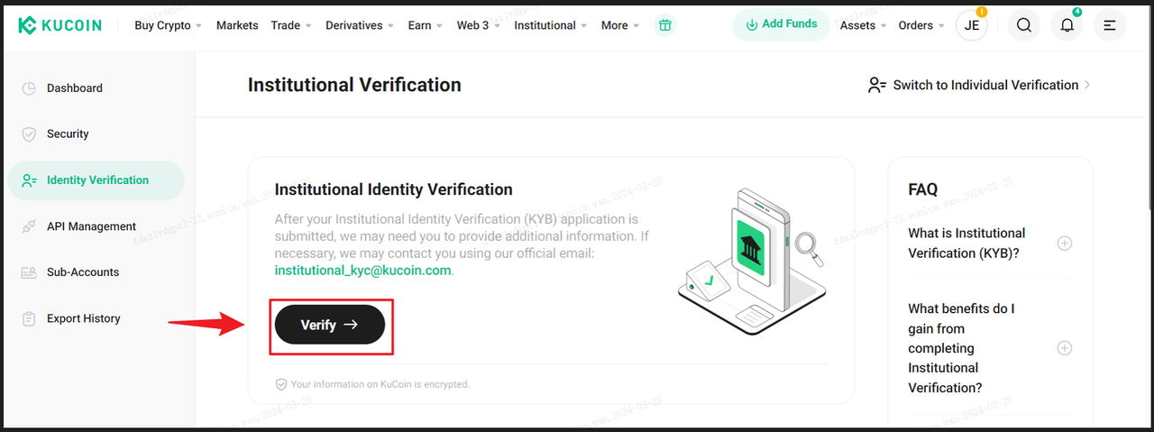A Verificação Institucional, uma medida central de KYB (Know Your Business), é a dedicação da KuCoin à conformidade regulatória e ao combate a crimes cibernéticos, como fraude, lavagem de dinheiro, golpes e financiamento do terrorismo. Como tal, é uma extensão dos procedimentos de KYC (Know Your Customer). Aqui está um guia detalhado sobre como iniciar a Verificação Institucional (KYB) através da plataforma da KuCoin.