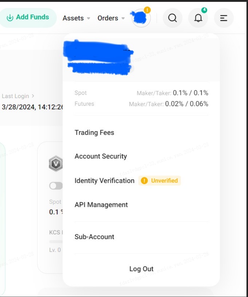 2.1 Acesse KuCoin.com, faça login em sua conta KuCoin, e clique em “Verificação de identidade” sob o seu avatar.